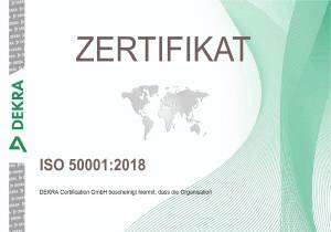 Die DEKRA Certification bescheinigt, dass das Unternehmen Nickelhütte Aue GmbH ein Energiemanagementsystem eingeführt hat und anwendet. Mit der ISO 50001 wurde erstmals ein internationaler Standard für ein systematisches Energiemanagement gesetzt.