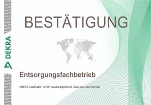 DEKRA Certification bescheinigt, dass das Unternehmen Nickelhütte Aue GmbH die Anforderungen des §56 Kreislaufwirtschaftsgesetz (KrWG) erfüllt.