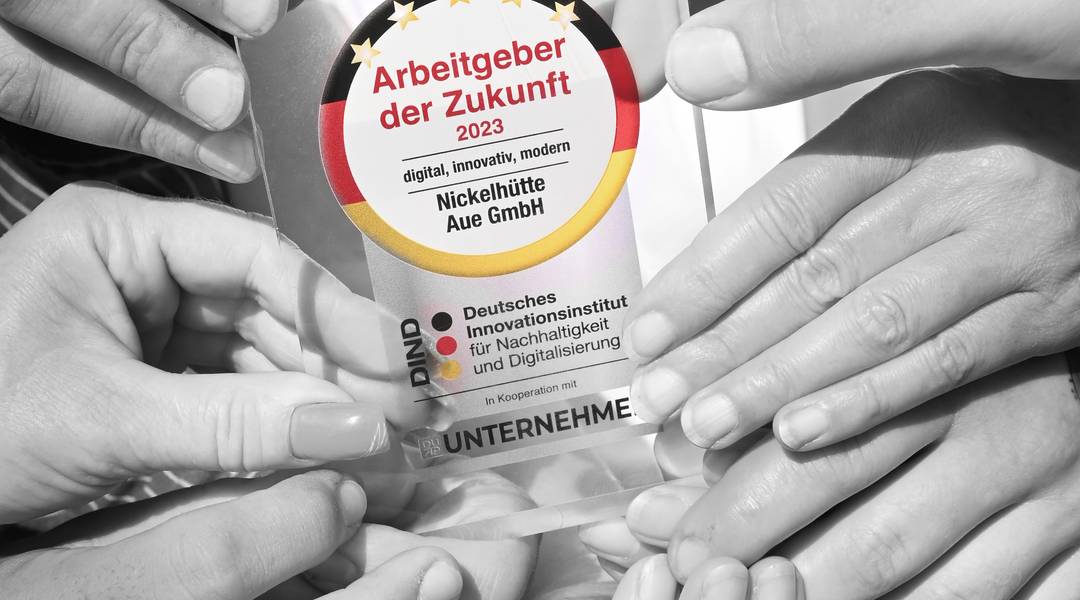 Wow! – das ist wahrlich ein Grund zum Feiern. Die Nickelhütte Aue wurde jetzt mit dem renommierten Preis „Arbeitgeber der Zukunft“ des Deutschen Innovationsinstituts für Nachhaltigkeit und Digitalisierung (DIND) ausgezeichnet. Die prestigeträchtige Anerkennung unterstreicht unser Engagement für ein innovatives Arbeitsumfeld und eine von Nachhaltigkeit und Fairness geprägte Unternehmenskultur.