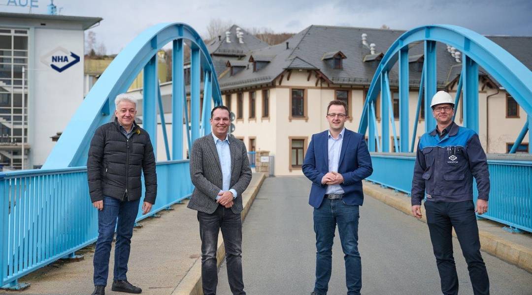 Am 21. Februar besuchten Rico Anton (2.v.l.) und Eric Dietrich (3.v.l.) die Nickelhütte. Rico Anton wurde als CDU-Kandidat für die im Juni 2022 stattfindende Landratswahl im Erzgebirgskreis nominiert. Derzeit besucht er Unternehmen im Landkreis, um sich über deren wirtschaftliche Entwicklung und Herausforderungen zu informieren. Herr Dietrich ist als Mitglied des Sächsischen Landtags u. a. im Ausschuss für Wirtschaft, Arbeit und Verkehr tätig. Als Wahlkreisabgeordneter vertritt er auch die Interessen heimischer Unternehmen und unterstützt die Nickelhütte z. B. bei Abstimmungen mit den zuständigen Ministerien. In einem Gespräch konnten wir den Besuchern aktuelle Projekte vorstellen, bei denen die Nickelhütte auf eine enge Zusammenarbeit mit den Institutionen des Freistaates und des Landkreises angewiesen ist. Insbesondere bei der Fortführung des Hochwasserschutzes am Schwarzwasser wird die Nickelhütte hierbei weiter unterstützt. Im Anschluss wurden bei einem Rundgang verschiedene Produktionsanlagen besichtigt und somit ein Überblick über die vielseitigen Anlagen der Nickelhütte gegeben.