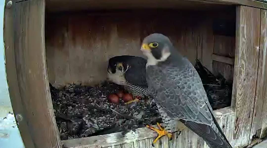 Wir haben eine Kamera installiert, welche uns einen Einblick in das Leben der Wanderfalken gibt, die auf unserem Schornstein nisten. Die Falkencam bietet uns die Möglichkeit, die faszinierenden Vögel aus nächster Nähe zu beobachten und mehr über ihr Verhalten zu lernen. In diesem Frühjahr hatten wir uns besonders gefreut, als das Falkenpaar, das schon seit mehreren Jahren hier brütet, drei Eier gelegt hat. Wir hatten gehofft, bald die ersten Küken zu sehen und ihnen beim Wachsen und Fliegenlernen zuzuschauen. Leider kam es anders als erwartet. Während der Brutzeit kam es zu Revierkämpfen mit einem neuen Falkenpaar. Schließlich gelang es den Neuankömmlingen, das alte Paar zu vertreiben und das Nest zu erobern. Während der Revierkämpfe wurden die Eier nicht ausreichend bebrütet, was dazu führt, dass wir in diesem Jahr leider keinen Nachwuchs sehen können. Wir hoffen, dass auch im nächsten Jahr wieder Falken an unser Nest zurückkehren und dann mehr Erfolg bei der Brut haben. Wenn dem so ist, lassen wir euch gerne wieder über die Falkencam teilhaben. Die bisherigen Mitschnitte der Falkencam bleiben natürlich erstmal online.